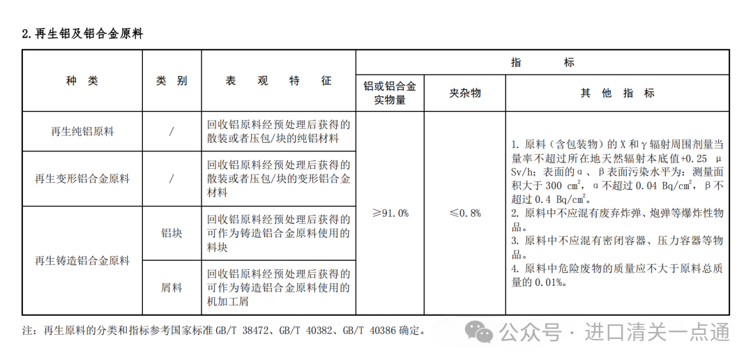 根据公告附表,“可进口再生铝种类” 包括 “纯铝”“变形铝合金原料”“铸造铝合金原料” 。这些不同类型的再生铝,在成分、用途和特性上都存在差异。